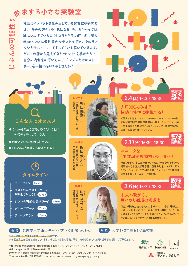 ゲストトークでは、社会にインパクトを生み出している起業家や研究者が、「自分の好き」や「気になる」をどうやって挑戦につなげているのか、そのリアルな人生ストーリーをじっくりひも解いていきましょう。