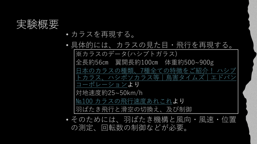 この実験のゴールは、鳥の羽ばたき飛行と滑空を自分の手で再現することです。